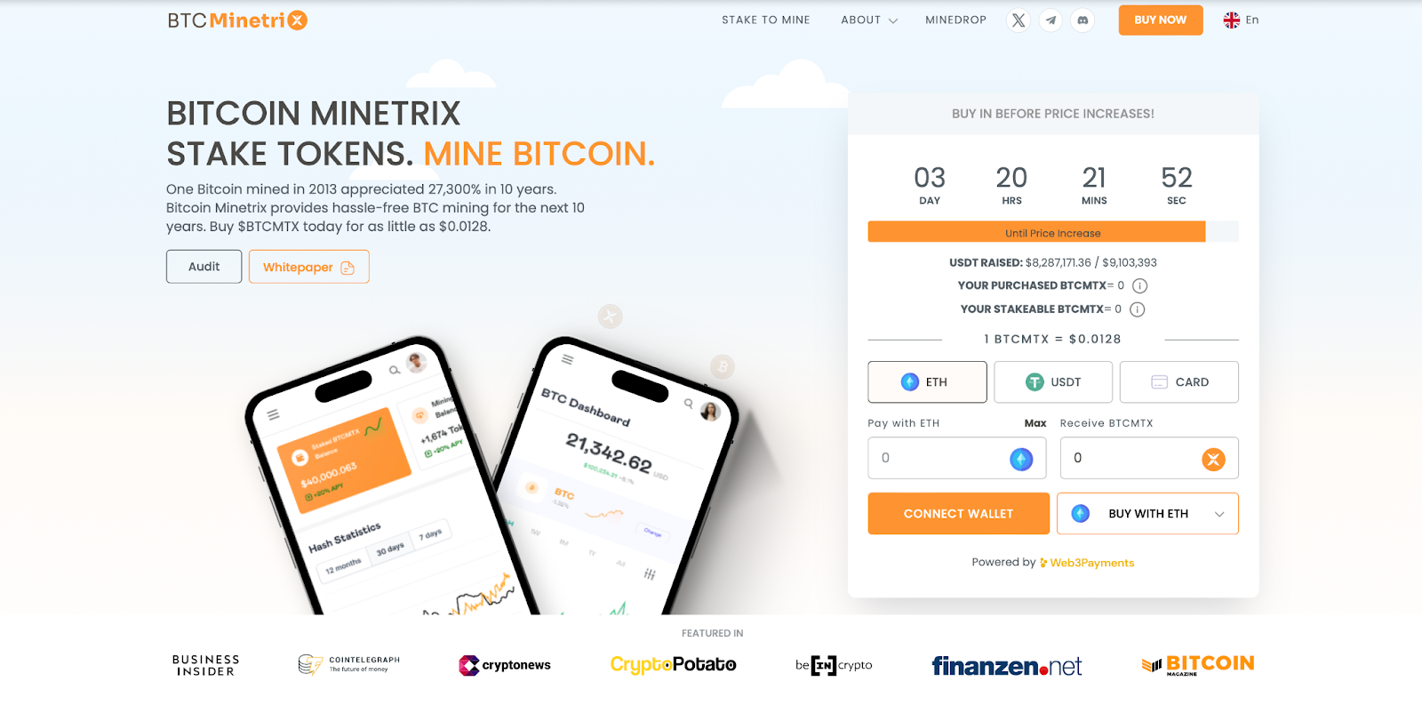 Currently, potential investors can buy $BTCMTX tokens for $0.0128, but the price will rise incrementally as the presale advances, with the next hike occurring in three days.