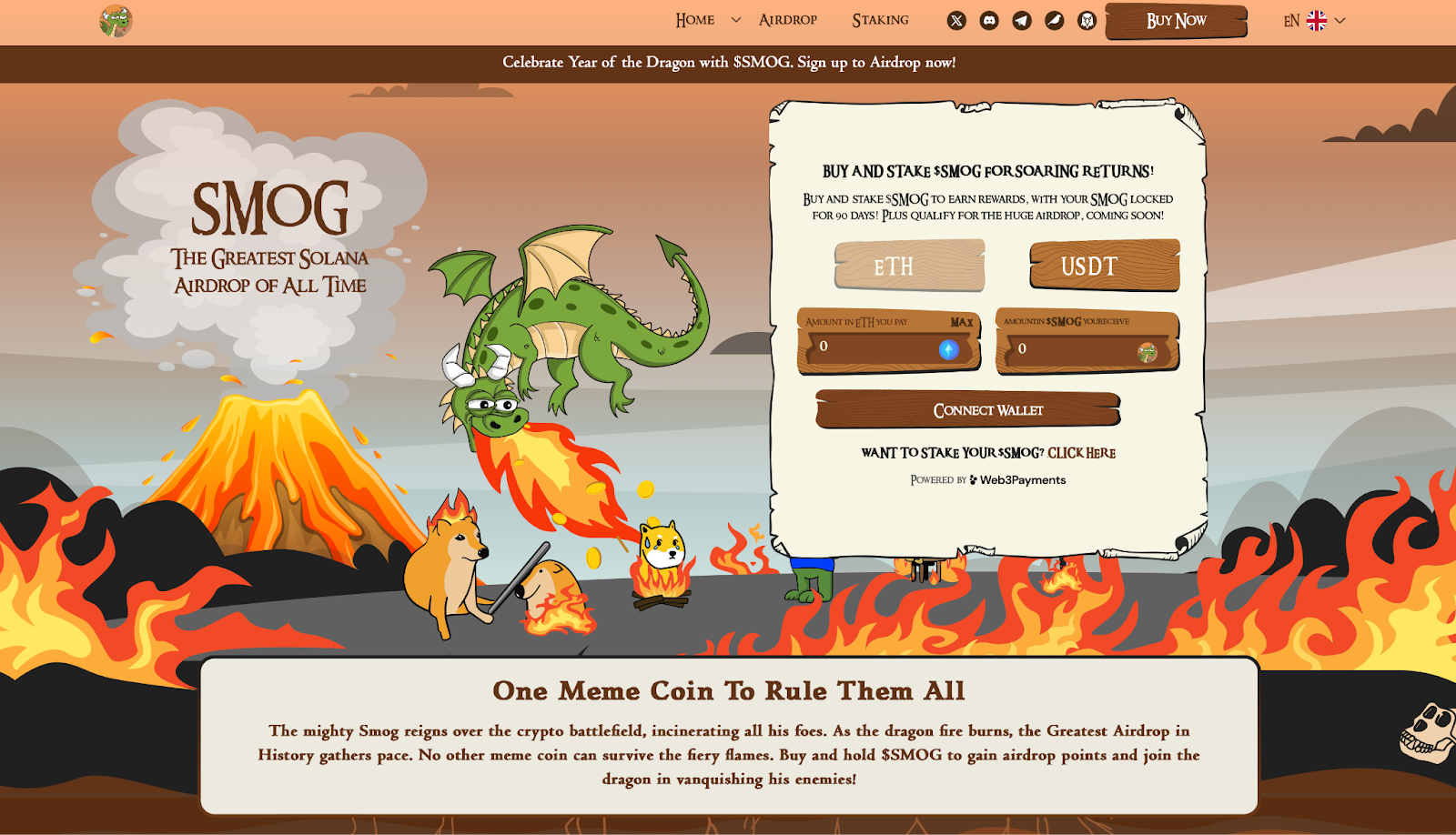 Ethereum users can buy Smog with an Ethereum-compatible wallet like MetaMask and ETH or USDT. Currently, Ethereum users can only purchase Smog from the project’s website.