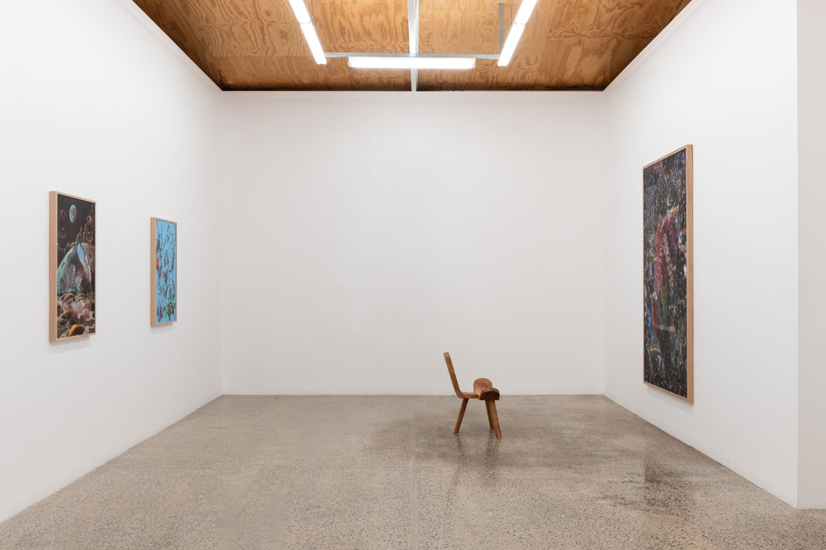 View images of the exhibition and selected artworks. Marian Tubbs, ‘shields and the metaverse café’ at STATION, Melbourne, Australia on 5 Jul–2 Aug 2025.