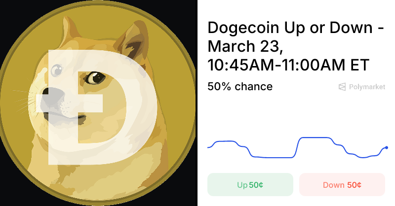 Polymarket odds are set by real traders putting real money behind their beliefs. “Dogecoin Up or Down – March 23, 10:45AM-11:00AM ET” is still building its trading base for this window, so the current Up/Down probabilities may reflect only a small number of trades. As more participants enter before the window closes, the odds will become increasingly robust. For the latest stats on Polymarket’s overall prediction accuracy, visit the accuracy page on Polymarket.