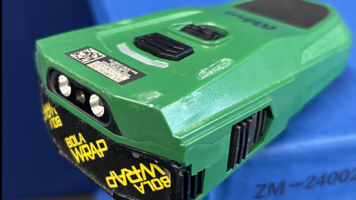 The “BolaWrap” is a less lethal restraining device used to subdue subjects in various situations.