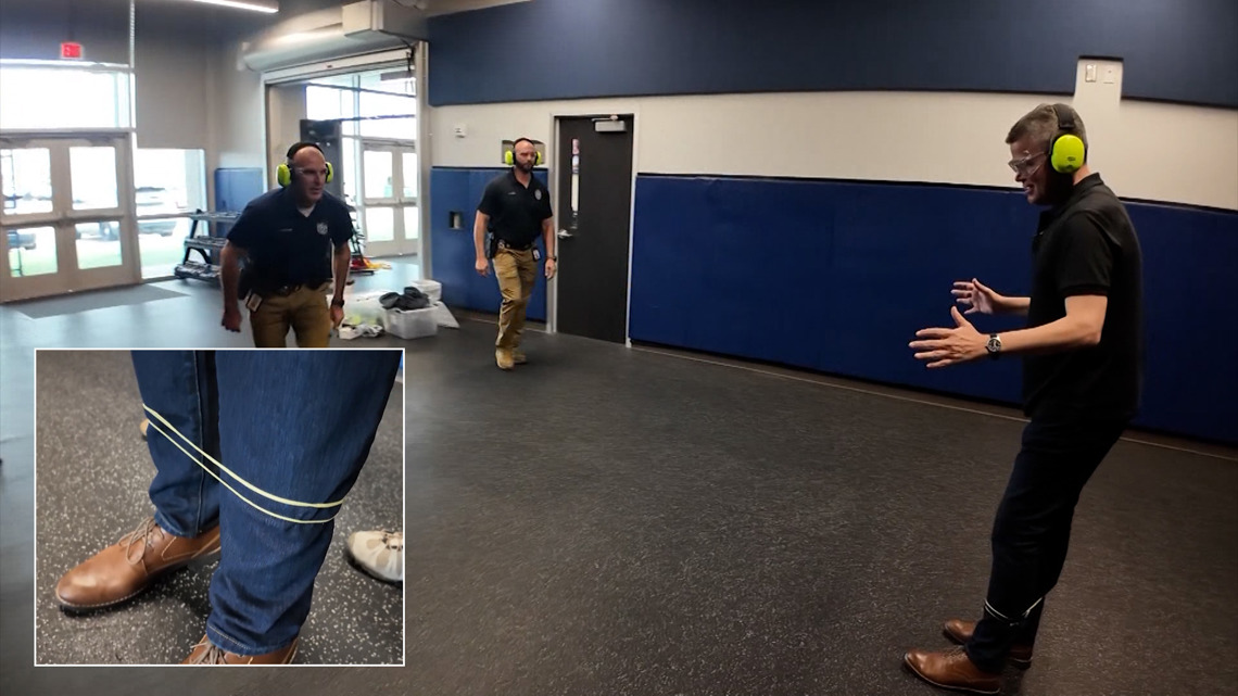 “It’s a 7’6″ long tether, Kevlar tether,” said Hramadka. “So, it just wraps around the subject and it’s got two prongs on the end of it just to help stick to clothing.”